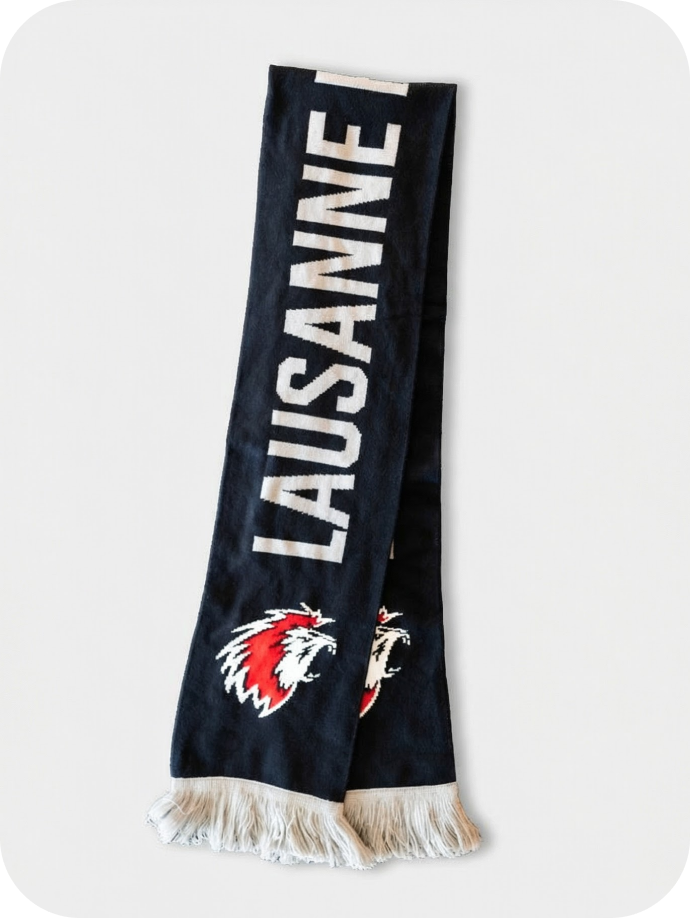 Nous accompagnons le Lausanne Hockey Club dans le développement de ses supports textile et objets personnalisés. De la conception des collections à la production, chaque pièce est pensée pour refléter l’identité du club et renforcer l’engagement des supporters. Textile officiel, accessoires et objets dérivés sont développés avec une attention particulière portée à la qualité, à la cohérence visuelle et à la performance en point de vente. Un merchandising structuré pour fédérer la communauté et prolonger l’expérience au-delà de la patinoire.